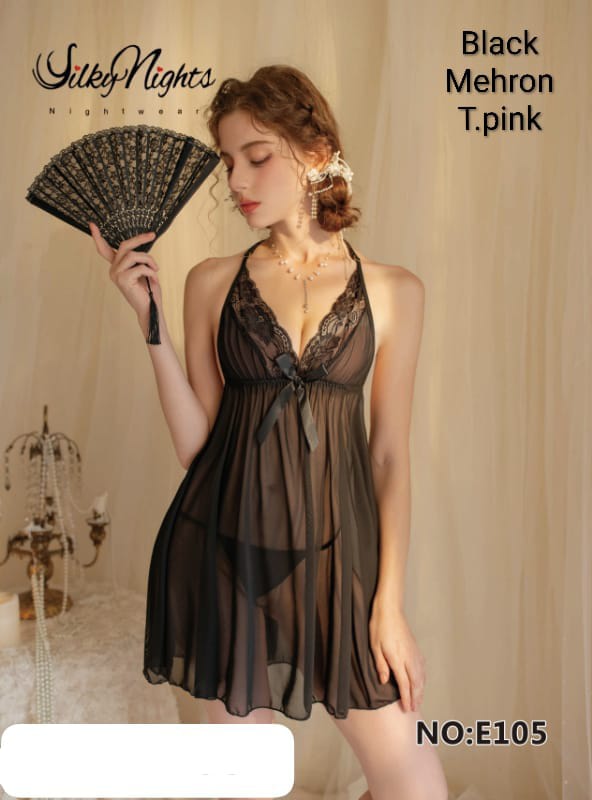 Stylish short frock-style lingerie crafted from soft full net fabric, offering a comfortable and flattering fit. Its fancy design adds a modern and attractive touch.